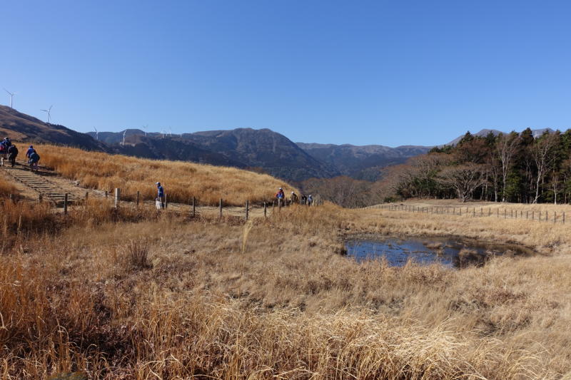 | 一週間ほど前の天気予報では、この当日だけが雨模様という最悪の予想。 そんな筈はない。やはり予報は見事に外れて、写真のような雲一つない暖かな行楽日和。 これぞ、私たちが誇る天気男と女の「ジオ研天気」。 歩き出すと同時に重ね着を一枚・二枚とリュックに収める姿があちこちに見られるような陽気となりました。 稲取ふれあいの森展望台から稲取の町や沖に並ぶ伊豆の島々を展望しながら、稲取の土地っ子ママさん認定ジオガイド・鈴木さんによるわが町・稲取やその成り立ちを示す地形の熱っぽい説明でツアーが開始されました。 白田浅間神社の頂上では、天城山が山体崩壊して巨大泥流がかけ下り、残された巨岩が物語る意味や細野高原出現の壮大なスペクタクルを想像してみました。 東伊豆町町営の風車を見上げ、その意外な大きさに驚きながら四阿(あずまや)まで来ると、パッと広がる360度の大パノラマに息をのみました。 そこには「本物のジオラマ」が展開して後方には天城連山がそして海に向かって天城山・伊雄山・大室山が流した溶岩の有様が何の説明もいらないように手に取るように広がっています。 ここで年代を追って斎藤先生から伊豆半島東海岸形成のドラマを聞いて雄大な気分に浸りました。 ここで広げたお弁当のまたおいしいこと。爽やかな風、暖かい陽光、青い空、碧い海、水平線に浮かぶ伊豆七島(今回は霞んで全部は見えませんでしたが)、光を受けて明るく輝く天城の山々。 今、ここでみんなと楽しくお弁当を頂けることを本当に幸せだと感じました。 午後は山を下って細野高原へ。 細野高原に湿原があることや水源地があることの意味を聞き、今はシーズンオフながら咲き乱れる野の花々を想いつつ、桃野湿原を巡り、すすきの原を散策して解散しました。 H記 |