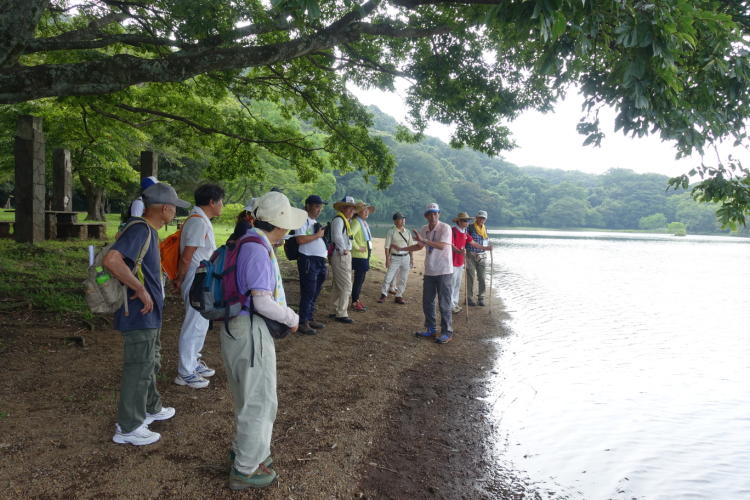 聴き入る参加者のみなさん 一碧湖(沼池)
